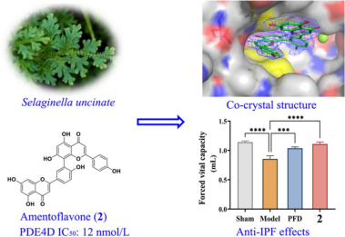 罗海彬教授团队在TOP期刊《Chinese Chemical Letters》(影响因子9.1,中国科学院一区)发表了题为“Discovery of amentoflavone as a natural PDE4 inhibitor with anti-fibrotic effects”的研究论文,发现天然来源的高活性PDE4抑制剂穗花杉双黄酮具有显著的抗肺纤维化作用。