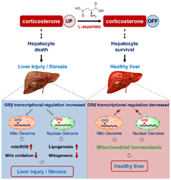 课题组前期应用非靶向代谢组学研究首次发现肝-肠轴L-天冬氨酸代谢异常是代谢紊乱相关脂肪肝病(MAFLD)发生的关键原因之一(Gut Microbes, 2021),但L-天冬氨酸的治疗作用与调控机制仍有待确证。本研究在前期基础上进一步探索L-天冬氨酸在四氯化碳诱导小鼠急性肝损伤与肝纤维化治疗作用与药理机制。研究发现小鼠口服L-天冬氨酸可有效逆转四氯化碳诱导急性肝损伤与肝纤维化。机制研究发现L-天冬氨酸通过重塑肝脏胆固醇-胆汁酸代谢平衡,抑制肝脏胆汁酸代谢中间物质皮质酮蓄积介导的糖皮质激素受体(GR)转录调控功能激活,从而逆转线粒体功能紊乱,保护肝脏。该研究工作以题目为“Amplifying hepatic L-aspartate levels suppresses CCl4-induced liver fibrosis by reversing glucocorticoid receptor ß-mediated mitochondrial malfunction”于2024年发表在Pharmacological Research(中国科学院一区,影响因子9.1)。色情网