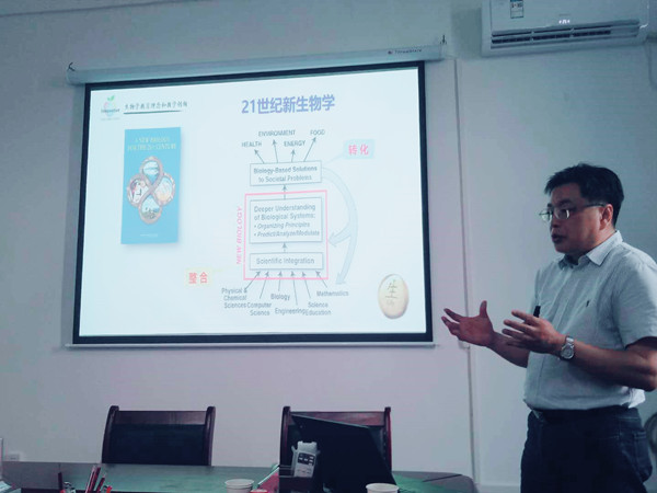 “对标一流”、国家级一流本科专业建设的关键期,复旦大学生命科学学院杨继教授拔冗于2020年6月8日在生物楼608报告厅做了“新生物学背景下生物学教育理念和教学创新”的专题报告。报告会由陈银华副院长主持,曹宪忠副校长致热情洋溢的欢迎词, 对于杨继教授莅临学院指导工作表示感谢!学院曲涛副书记、刘柱副院长、宋延廷副院长、罗国忠副处级辅导员及生物科学系部分老师参加了此次报告会。
