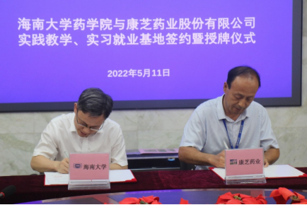 与康芝药业股份有限公司签订了共建实践教学、实习就业基地协议书,并授牌。