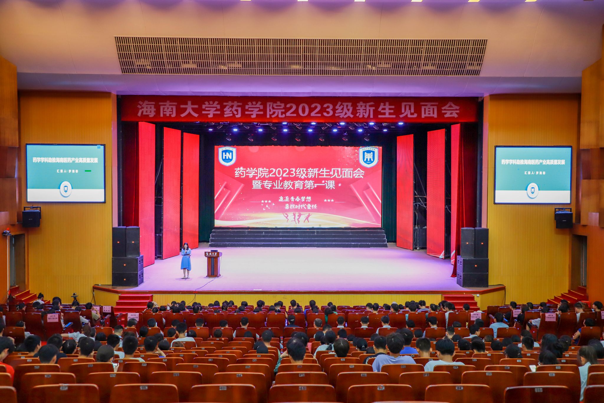 院长罗海彬院长上台讲话。他用温暖洪亮的声音代表学院欢迎新生的到来,语重心长地勉励大家要端正学习态度,努力学习,成为国家栋梁之材。罗海彬院长还为新生上了一堂别开生面的专业教育第一课。他指出,药学事业与国家富强、人民健康息息相关。在健康中国战略中,我国亟需大力发展药学事业,培养药学人才,以实现从药物“跟跑”向“并跑”乃至“领跑”的跨越。他勉励新生秉承“海纳百川、大道致远”的校训,在药学专业学习中勇攀高峰,成为医药产业发展所需要的高素质创新人才。