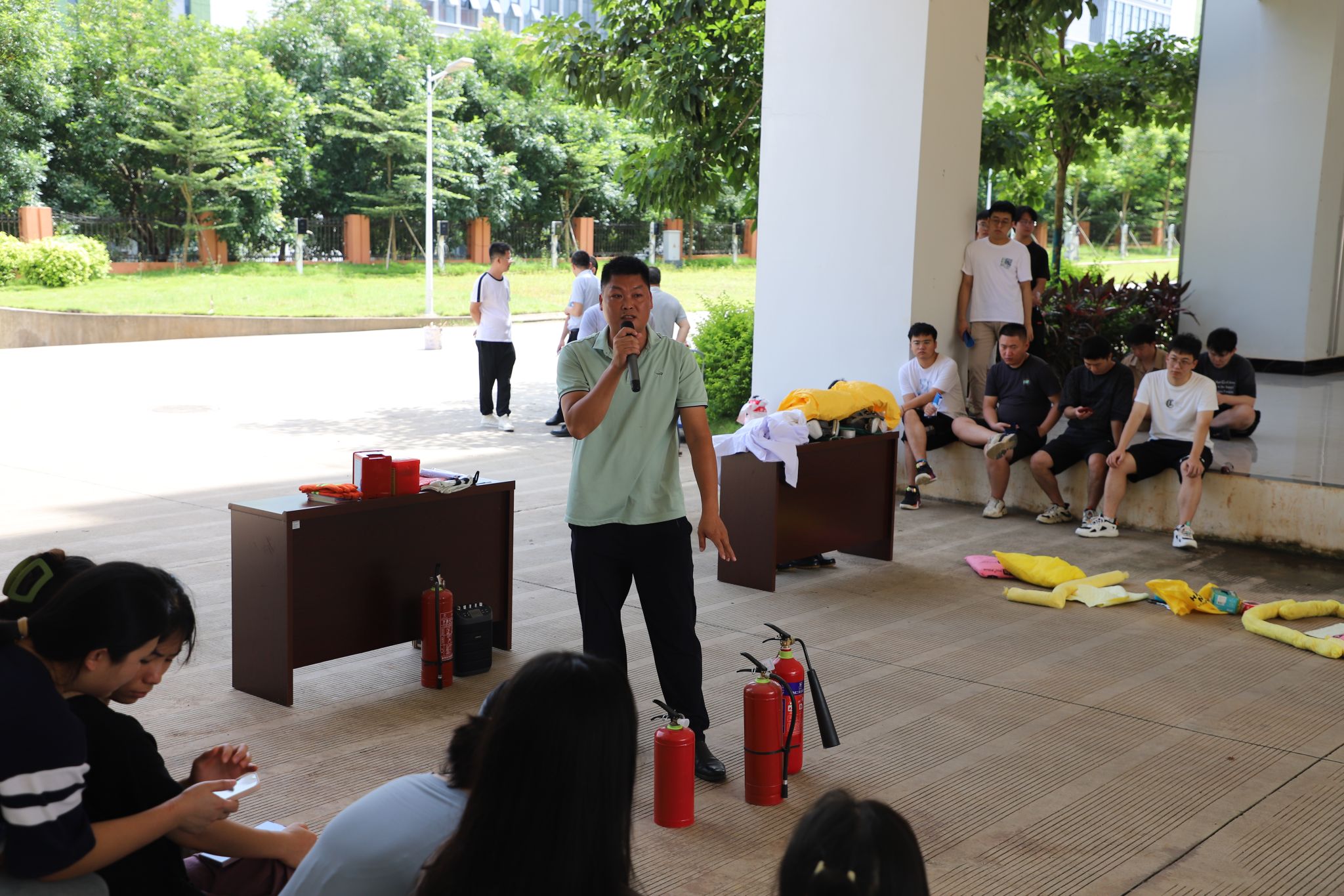本次培训活动分危化品泄漏应急处置、消防器材正确使用、实际灭火演练及有奖问答等环节。由保卫处王智老师作消防应急处置宣讲,从易燃易爆物品区分、火场逃生要点提示、楼宇环境布局熟知等三个角度强调提升消防安全意识和素养的重要性;实验室与设备管理处林友联老师进行了一场危化品泄漏应急处置的演练;保卫处林德鑫老师做各类消防器材的使用培训。