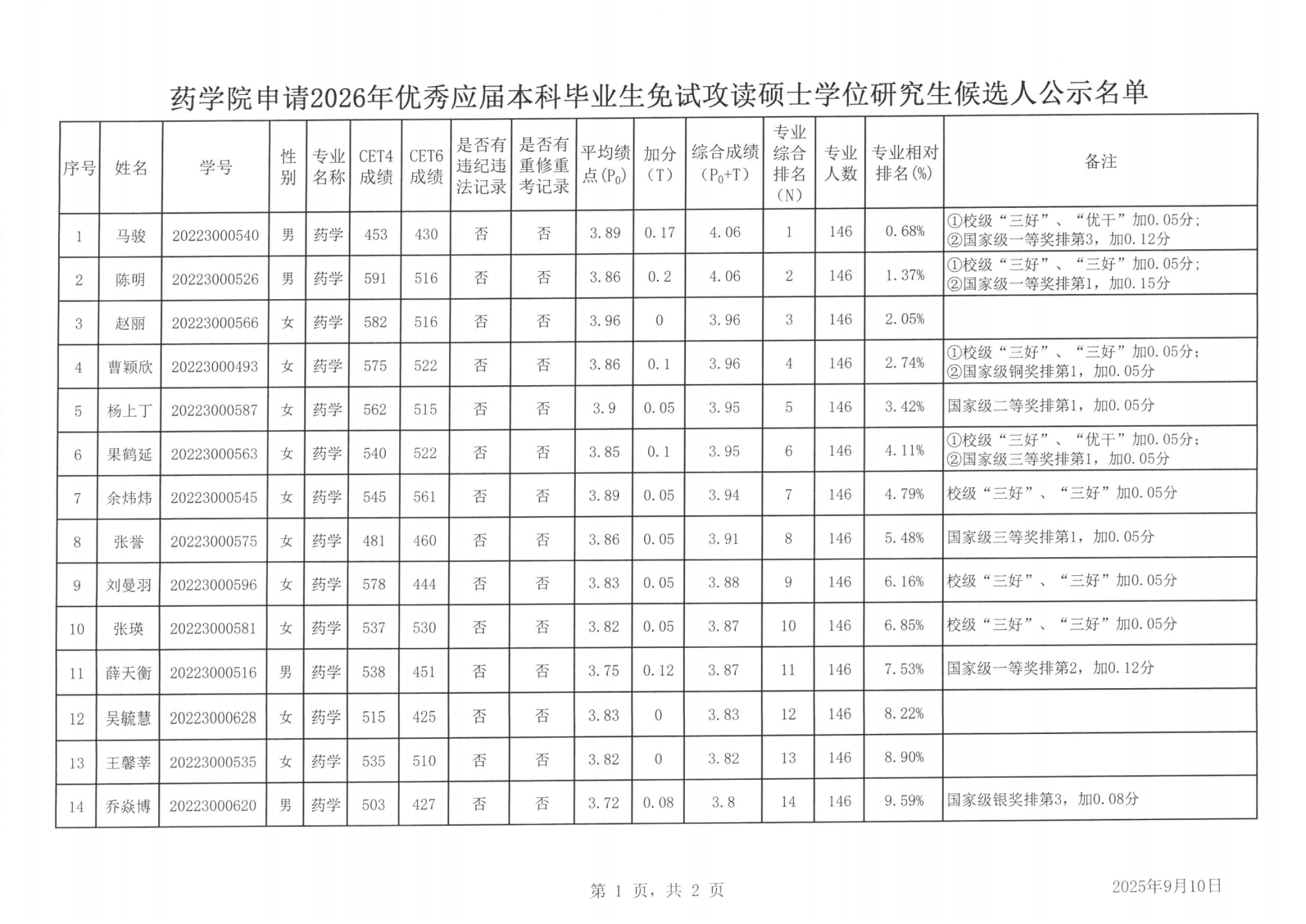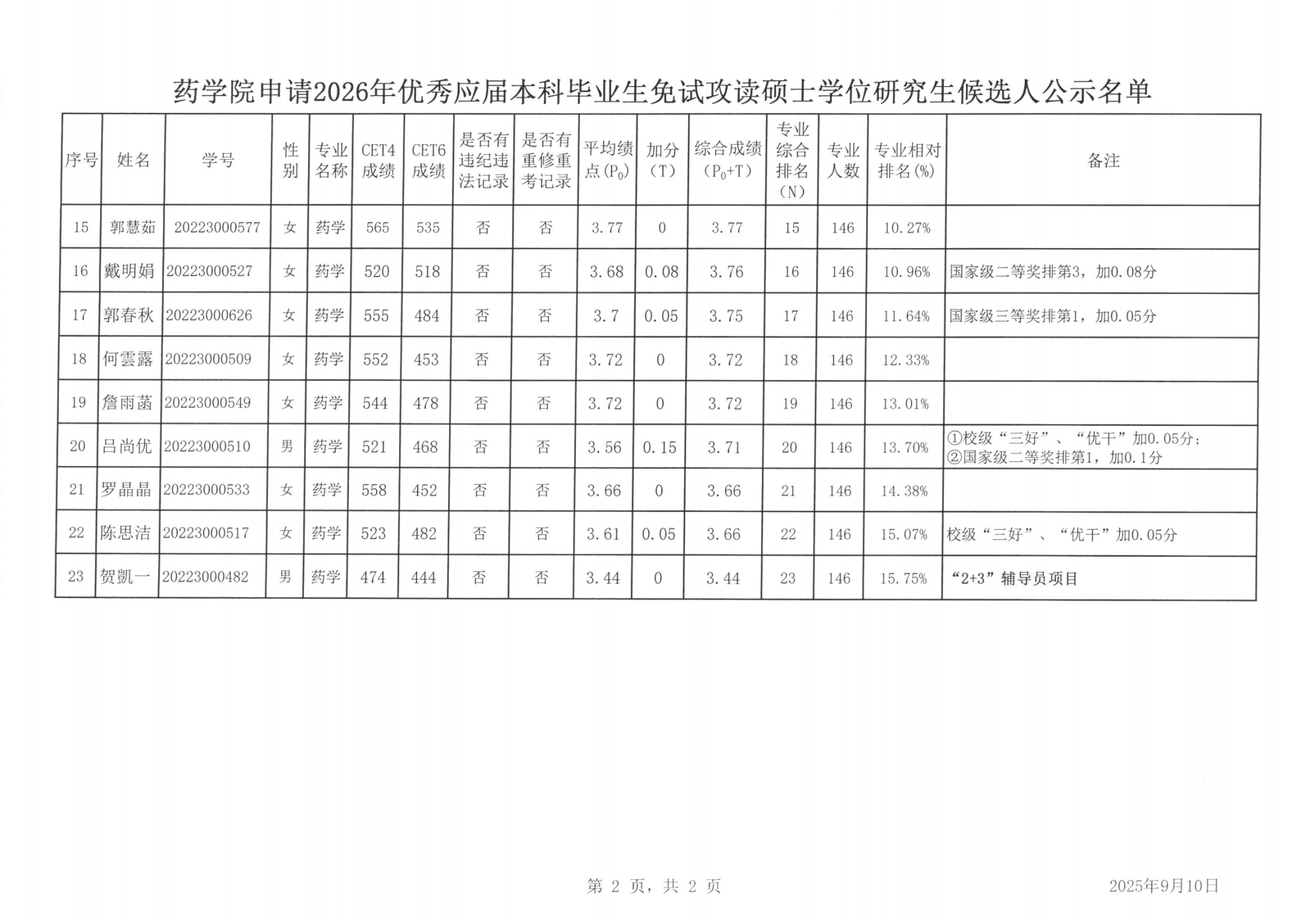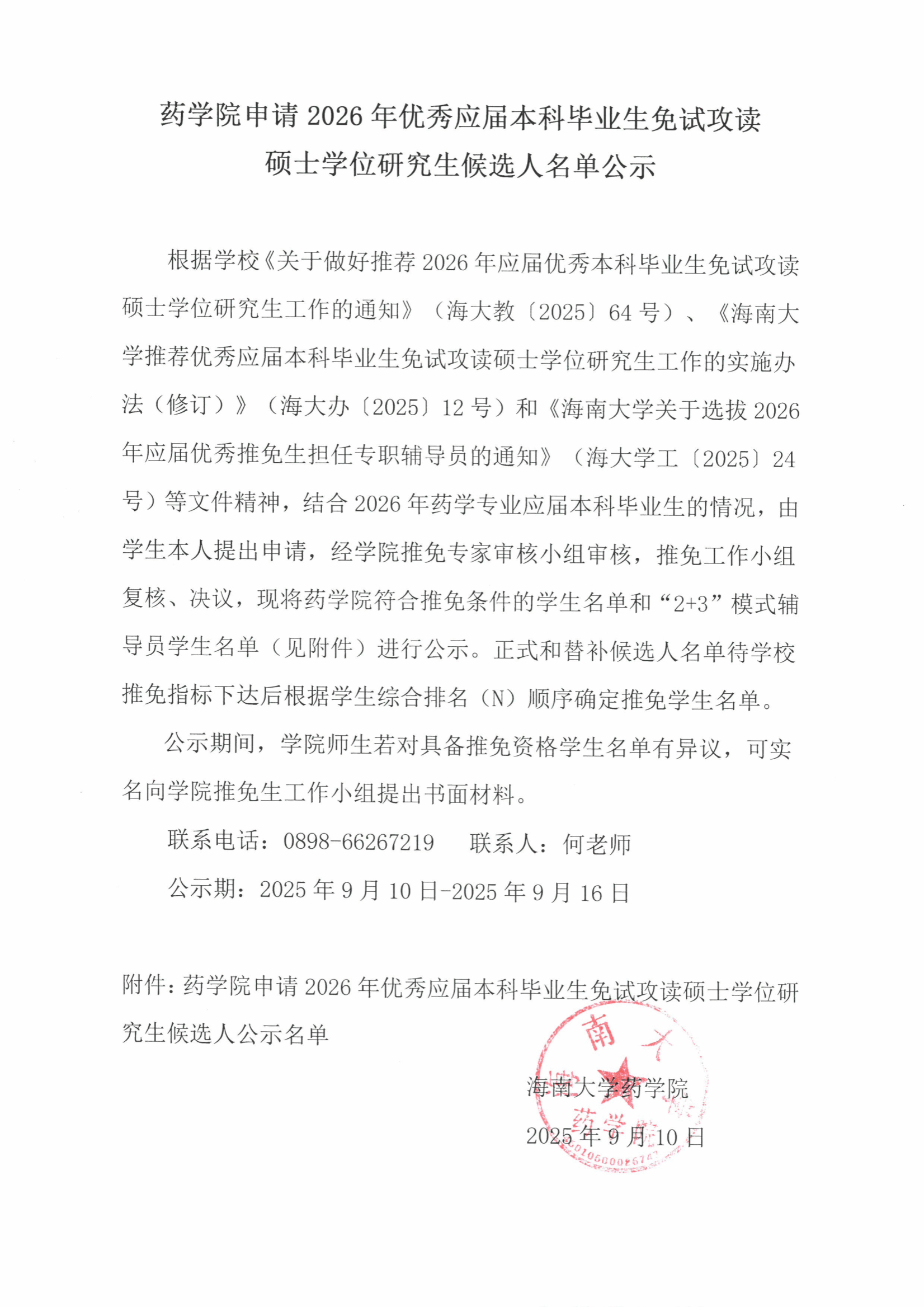 色情网 申请2026年优秀应届本科毕业生免试攻读硕士学位研究生候选人名单公示