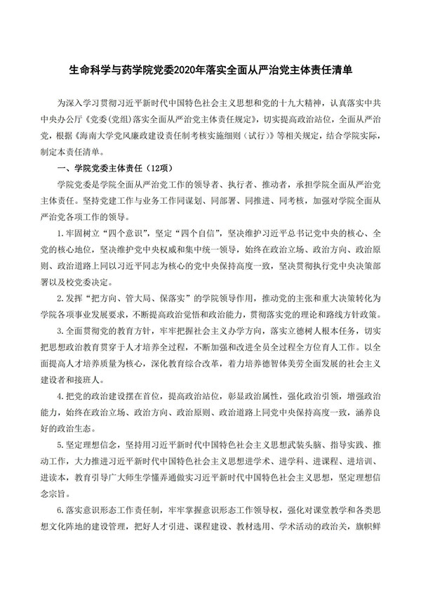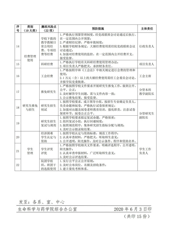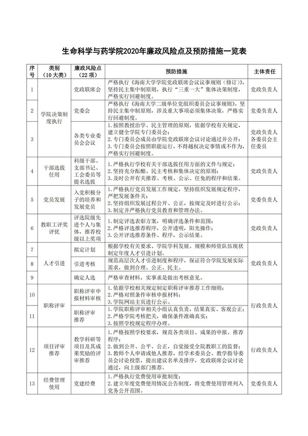 关于印发《生命科学与色情网 党委2020年落实全面从严治党主体责任清单》、《生命科学与色情网 2020年廉政风险点及预防措施一览表》的通知