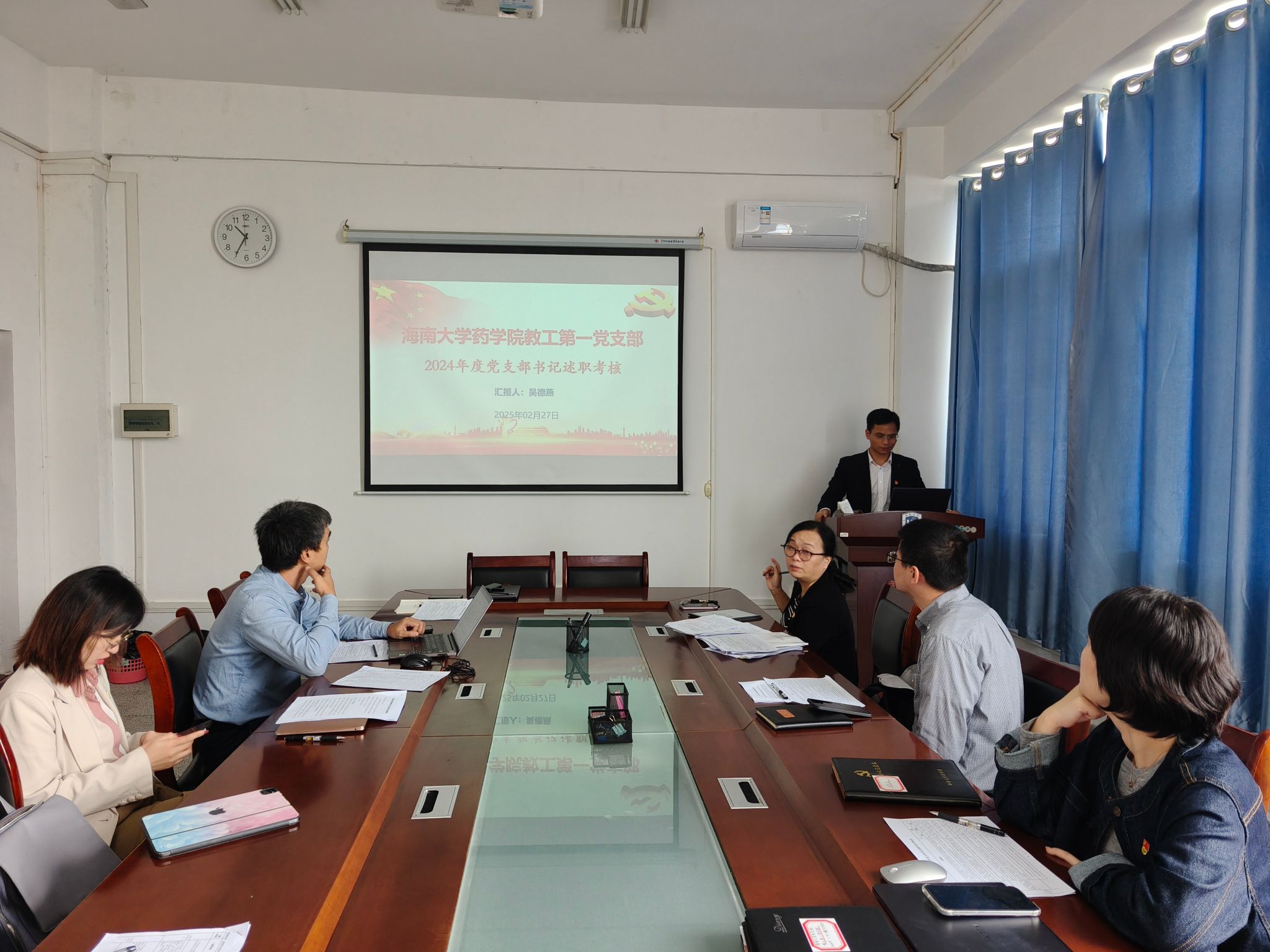 教工第一党支部书记吴德燕述职)