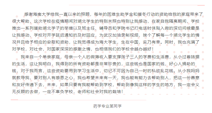 当然,未受疫情影响是好事,但是每位同学一定要结合自身情况,有困难如实申报,及时和学院联系,学校学院会尽最大的努力给你温暖和帮助,学校学院永远是你们最坚强也最温暖的后盾。
