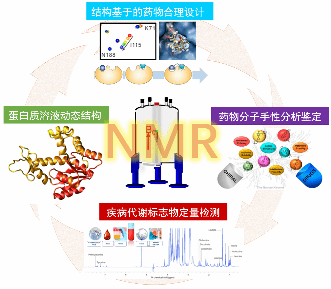 面向国家生命健康产业需求,团队以生物核磁共振、顺磁效应和蛋白质位点特异性标记为核心技术,辅以分子生物学和化学生物学的分析技术手段,致力于在原子分辨率水平阐释天然产物药物分子立体构型、重要疾病靶标蛋白质在近生理条件下的动态结构及其与功能的关系,并基于靶标蛋白质在溶液中的动态结构合理设计并优化药物先导分子。